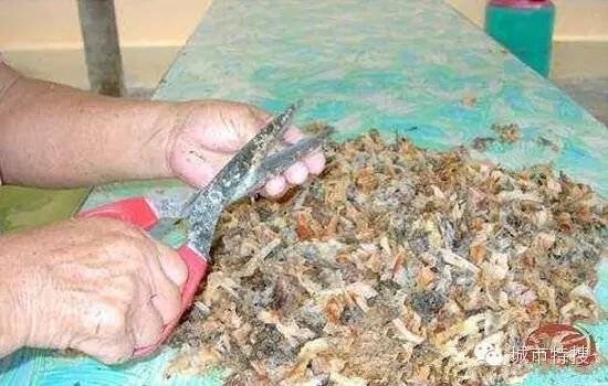 清除了雜粗毛、草後,再剪成小塊繼續清理。