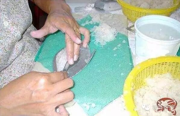 然後就是開始把它們加工成燕餅的時候了。